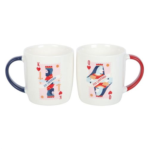 Celebrate love, laughter, and togetherness with this charming couples mug set, featuring Her Ladyship and His Lordship designs. With a crisp white base and contrasting red and navy blue handles, these mugs showcase classic playing card motifs that perfectly symbolize the king and queen in your life. A thoughtful gift for anniversaries, weddings, Valentine’s Day, or simply celebrating the perfect pair.